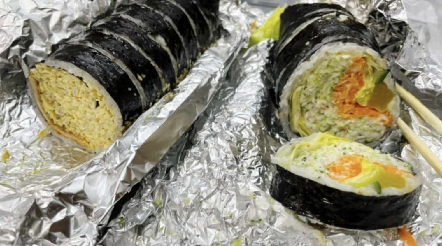 대표 메뉴는 계란을 채 썰어 가득 채운 밥도둑 김밥과 신선한 야채가 조화를 이루는 샐러드김밥이다.