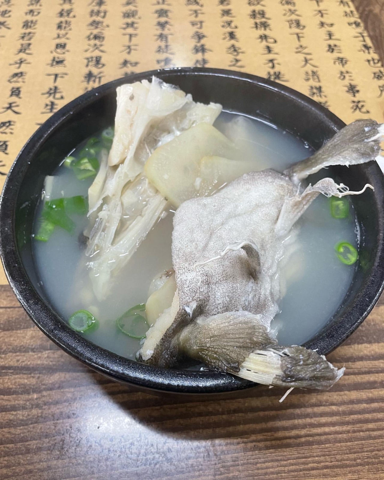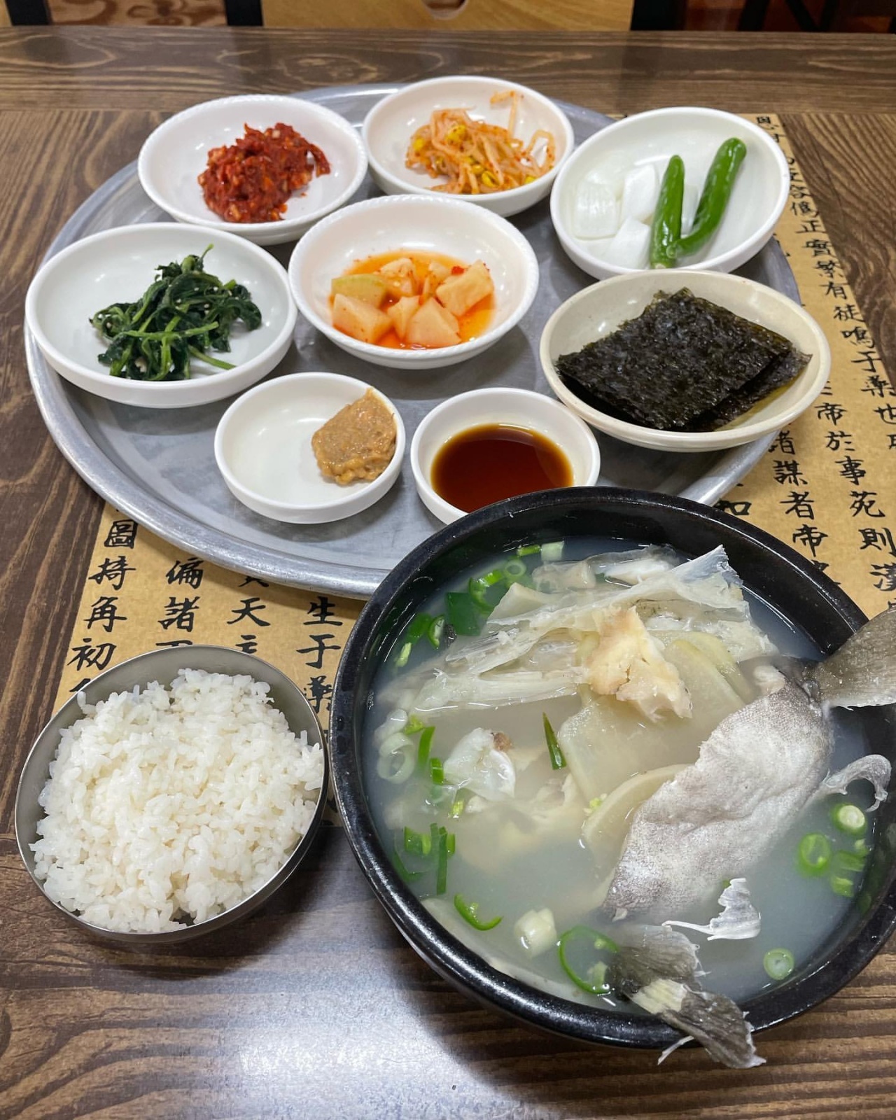 대구 머리를 사용해 진하게 우린 국물은 뽀얀 색깔이 보기만해 도 해장이 절로 되는 느낌이다. 시원한 맛은 두말할 것 없고, 청양고추를 넣어 칼칼한 맛이 좋다.