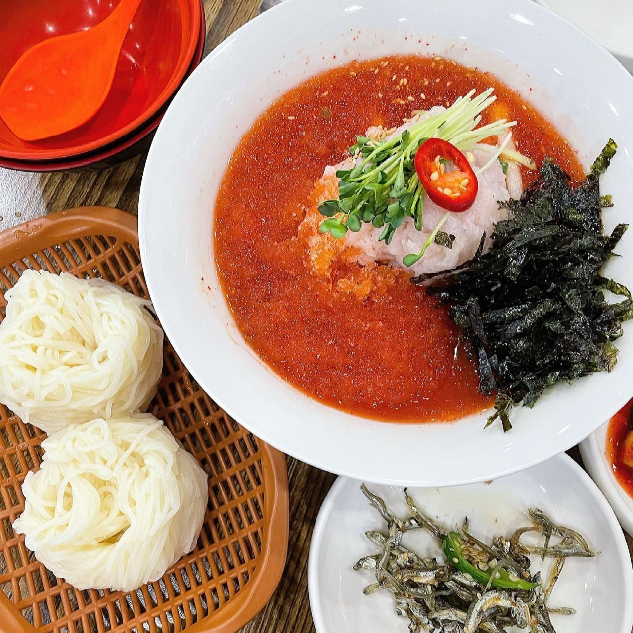 탱글한 면과 편육, 계란, 양념장, 오이, 아몬드 등의 고명이 화려한 자태를 뽐내고 살얼음 동동 떠 있는 시원한 육수는 여름을 제대로 나게 한다. 하절기에는 밀면 손님이 많아 국밥과 수육은 판매하지 않으니 참고하면 좋다.