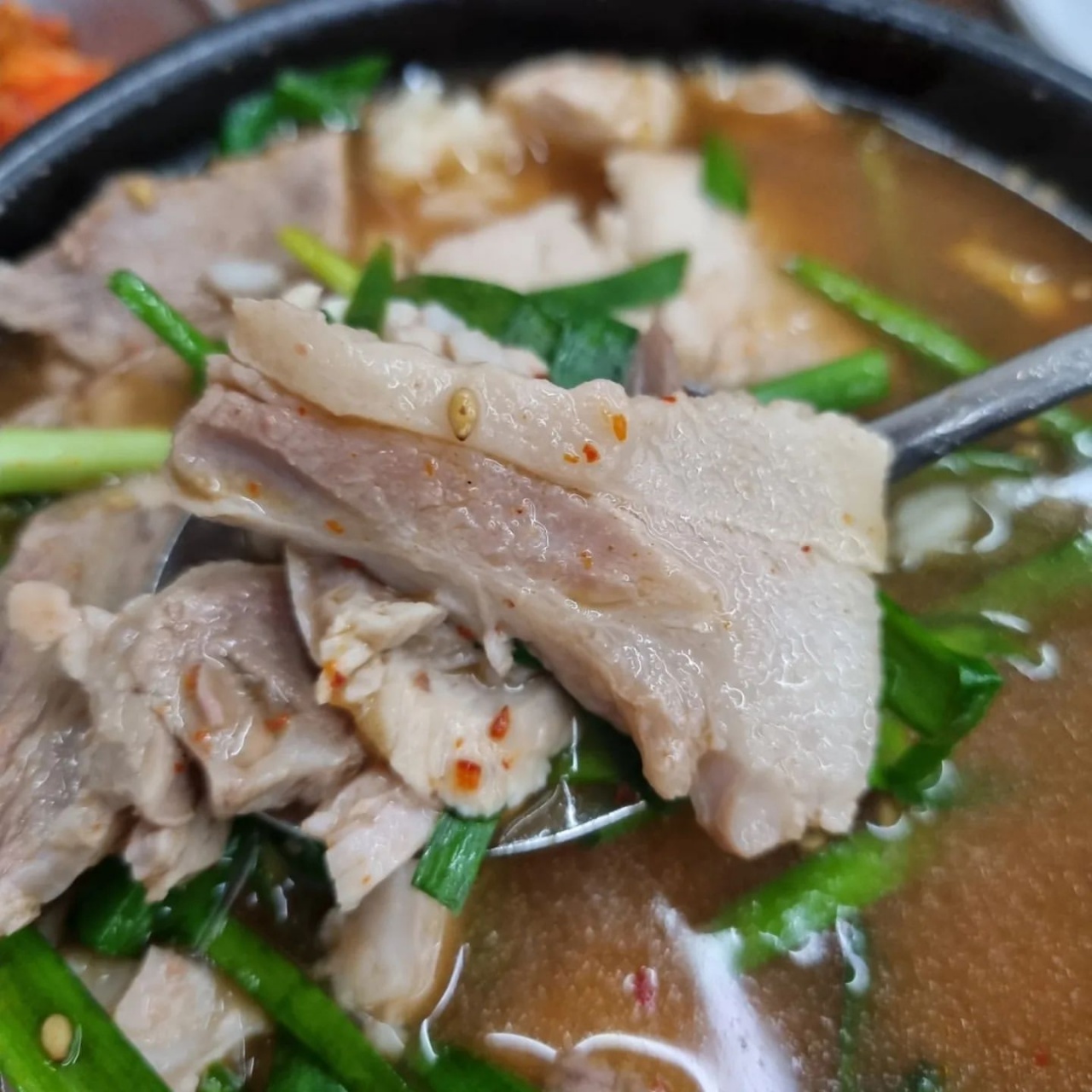 이곳은 맑은 곰탕 스타일의 국물을 내는데, 부산식 돼지국밥 하면 빠질 수 없는 부추와 함께 얼큰한 국물로 변신시켜줄 양념장이 들어 있다. 감칠맛 나는 산뜻한 국물은 꽤나 간간한 편이라 밥과 함께 먹기 좋다. 고기, 순대, 내장을 각각 원하는 대로 섞어 주문이 가능한 점도 장점이다.