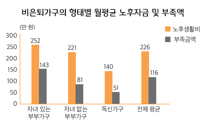 그렇다면 우리나라는 어떤 상황일까요. KB금융지주 경영연구소에서 발표한 연구 결과에 따르면 노후생활에 실제 필요한 자금에 비해 예상 준비자금은 절반도 못 미칩니다. 통계청이 발표한 ‘2017년 사회조사 결과’에서 응답자 중 3분의 1은 아무런 노후대비를 하지 않고 있으며 3분의 1은 국민연금에만 의존하고 있는 것으로 나타났습니다. 게다가 퇴직연금에 가입한 근로자 중 60%는 수익률이 낮은 DB형을 선택하고 방치합니다. 이렇듯 노후준비를 시작한 사람이 적고, 제대로 하는 사람은 더 적은 게 현실입니다. ‘금퇴’를 꿈꾼다면 하루빨리 연금 비중을 늘리고, 연금상품의 구성을 고민해야 하는 이유입니다.