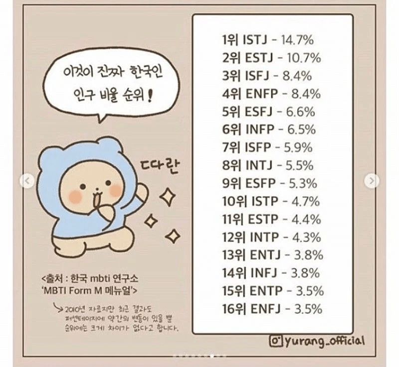 (좌) 전세계 MBTI 비율 / (우) 한국 MBTI 비율(2010)