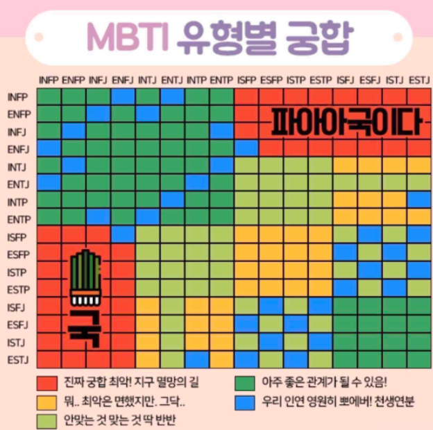 최악의 궁합 : esfp, istp, estp, isfj, esfj, istj, estj