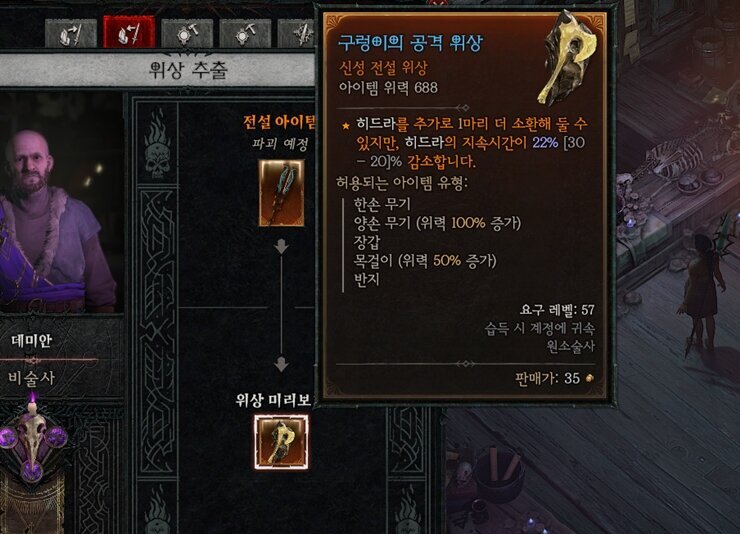 구렁이의 공격 위상 : 히드라를 추가로 1마리 더 소환해 둘 수 있지만, 히드라의 지속시간이 감소합니다.