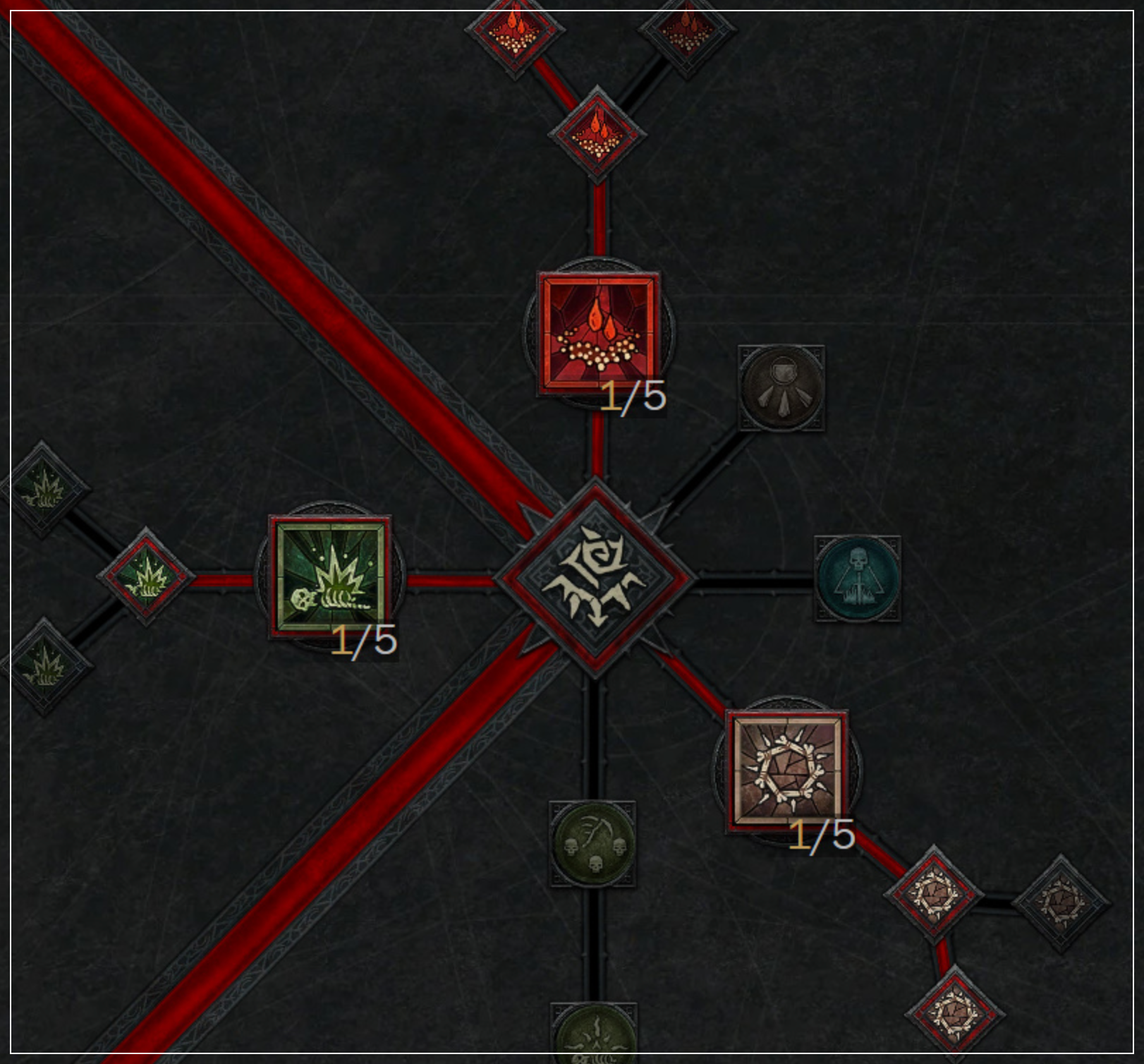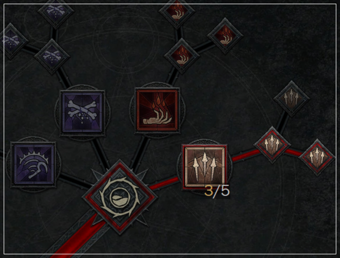 강령술사의 궁극기 [뼈 폭풍] 1포인트 찍고, [극상의 뼈 폭풍]과 [최고의 뼈 폭풍]을 배워서 피해 감소효과+극대화 확률 증가를 동시에 얻도록 하세요. [뼈 폭풍]은 강령술사의 몰이사냥 전용 스킬이니 꼭 배워야 합니다.