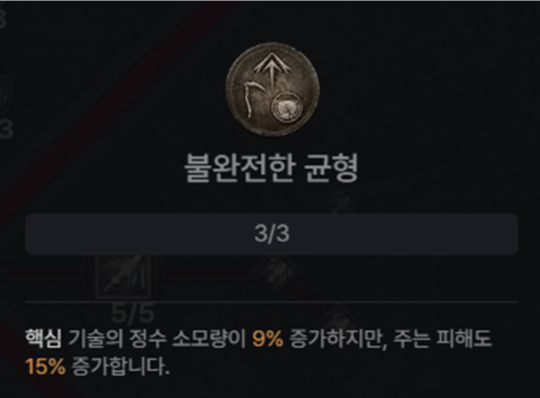 마지막으로 [불완전한 균형]을 3포인트 찍어서 주는 피해 15%도 증가시키도록 합니다.