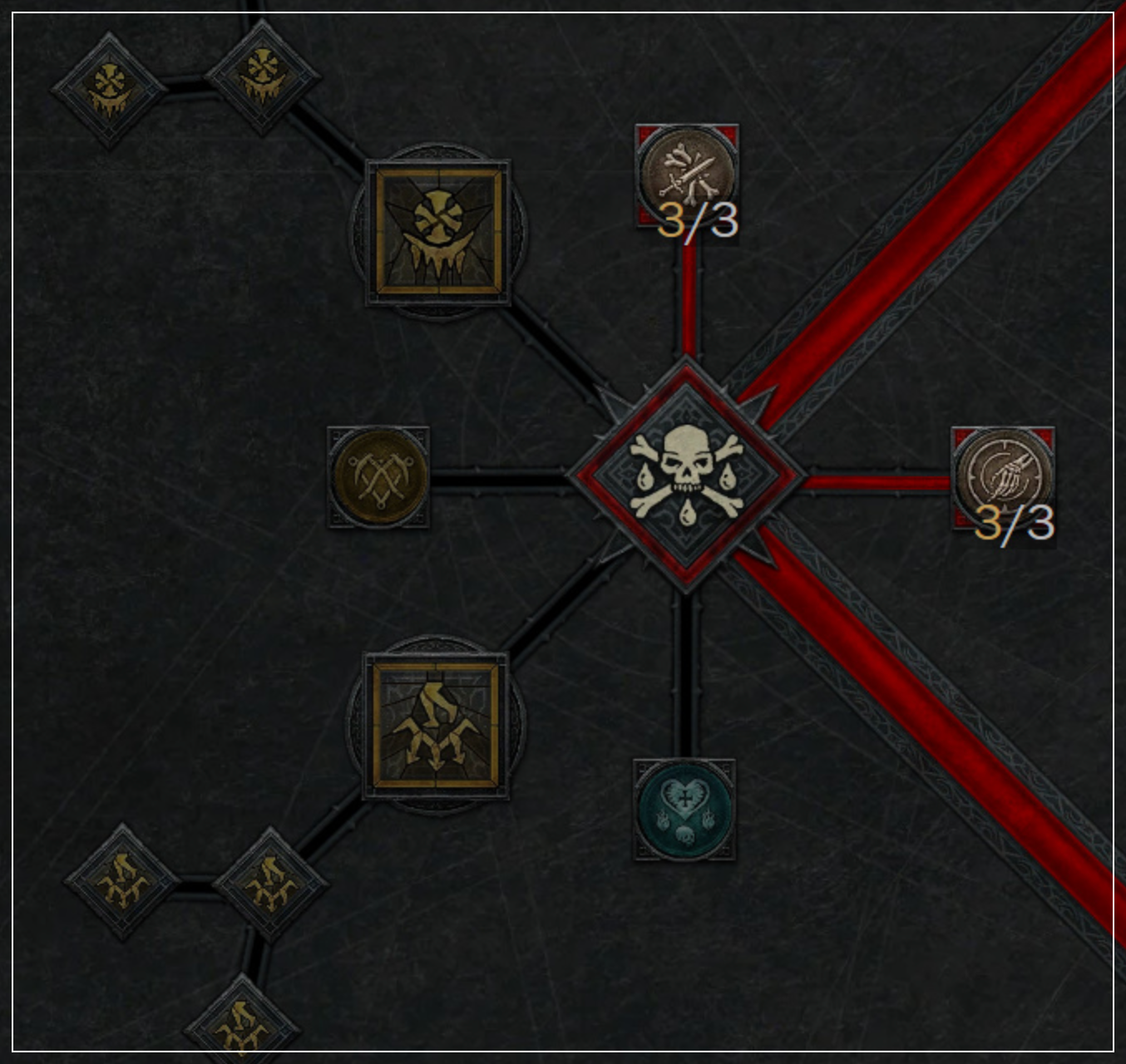 [톱니], [복합 골절], [적출], [급속 골화] 모두 3포인트씩 투자합시다. 이 4개의 스킬트리는 전설 아이템과 상관없이 꼭!! 투자해야 할 무조건 찍어야 하는 스킬트리입니다.