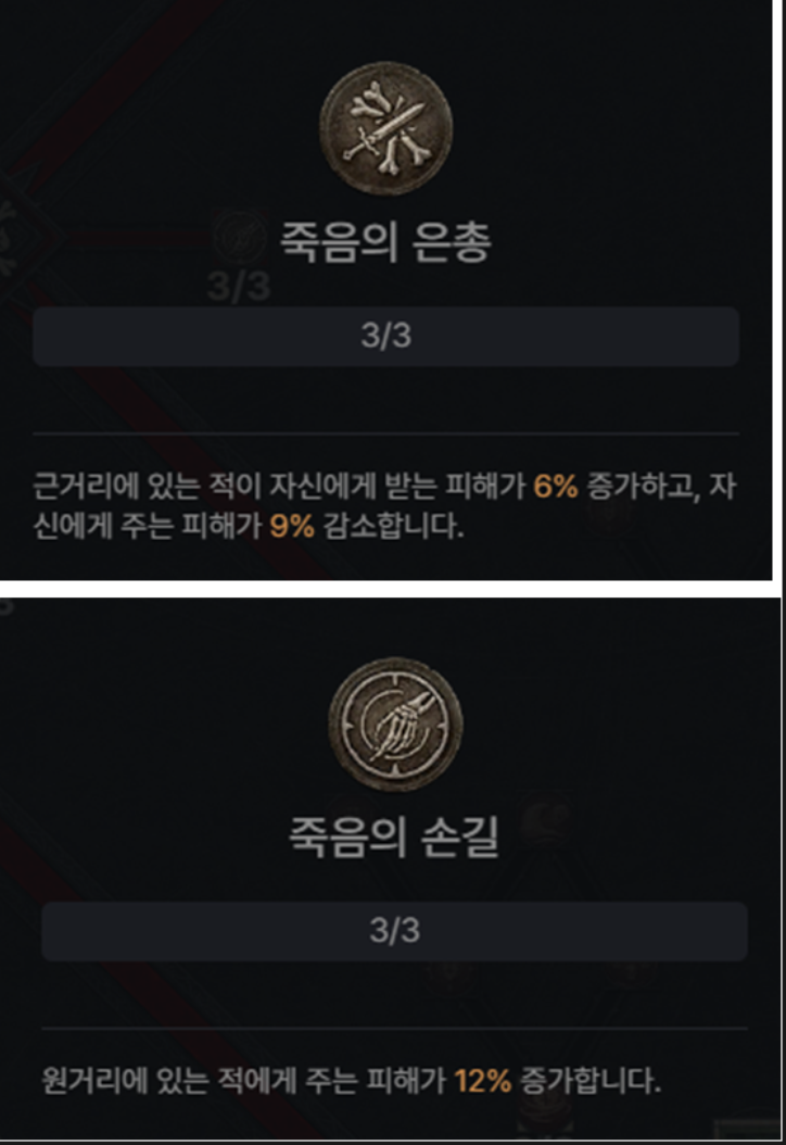 [죽음의 은총]과 [죽음의 손길] 3포인트씩 꼭 찍어주세요. 정말 중요한 저주 스킬들이니, 꼭꼭 찍어주도록 합시다.