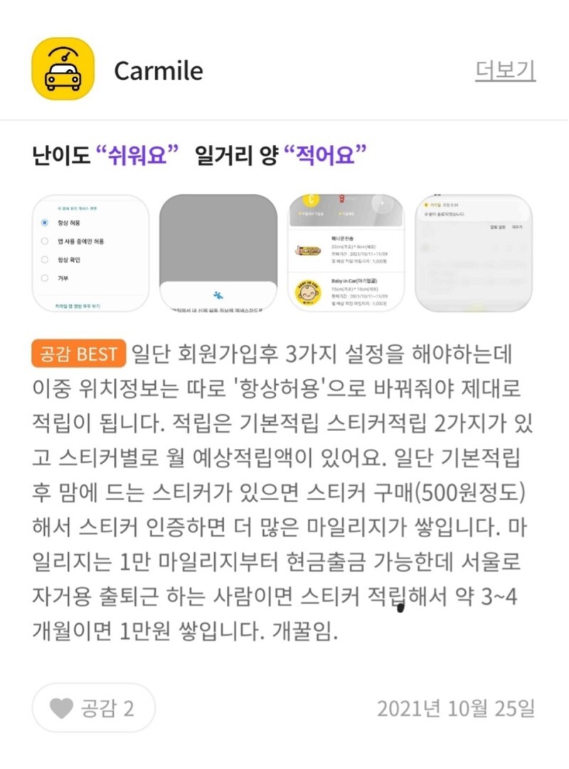 서울, 경기, 인천 지역 활동 가능하고 만 19세 이상 본인 소유 자동차가 있어야 해요. 아래 사용 후기를 보면 위치정보는 항상 켜 놓고 1만 이상 마일리지가 쌓이면 현금 사용 가능하답니다.
