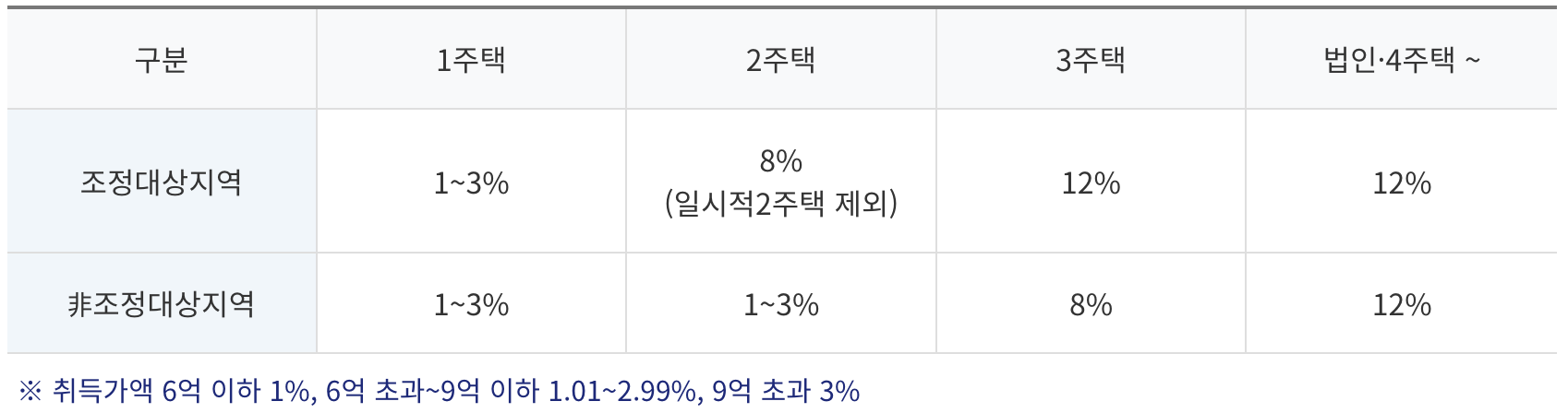 - 주택 유상거래 세율 : 1~12%