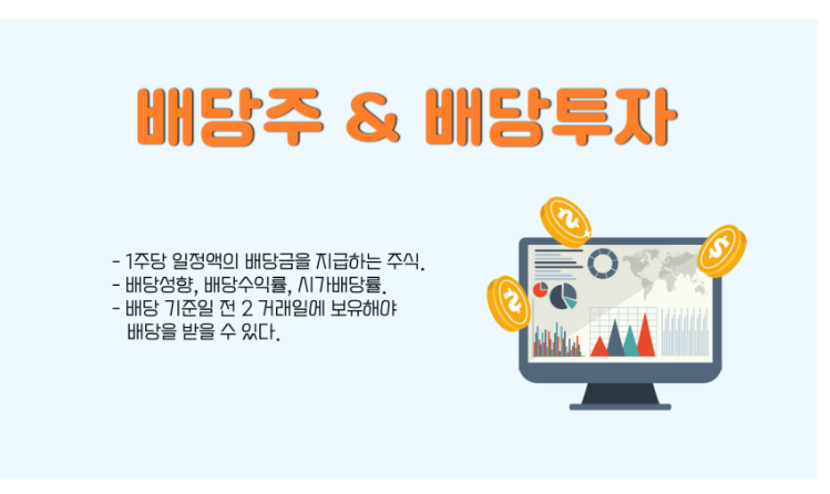 배당이란, 주주들은 기업에 자본을 낸 대가로 기업이 영업을 통해 벌어들인 이익을 배분 받는 행위를 말합니다.