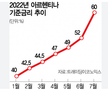 2022년 후반기를 기준으로 아르헨티나 중앙은행 기준금리는 75%로 올랐다.