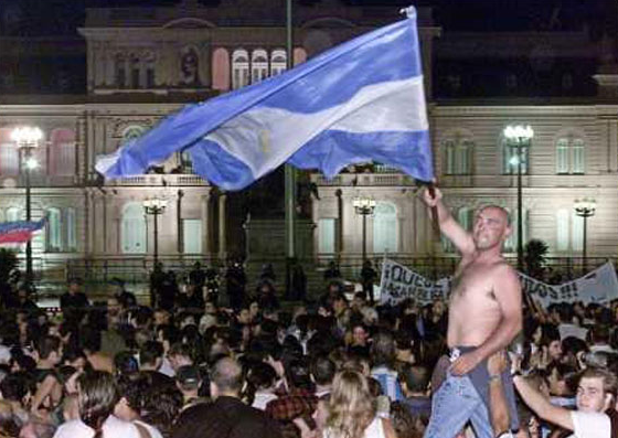 결국 2001년 12월 20일 페르난도 데 라 루아(Fernando de la Rua) 대통령이 사임하며 아르헨티나는 모라토리엄(채무지불유예)을 선언했고, 아돌포 로드리게스 사아(Adolfo Rodriguez Saa) 임시 대통령은 12월 23일 디폴트(채무상환불이행)를 선언했다.