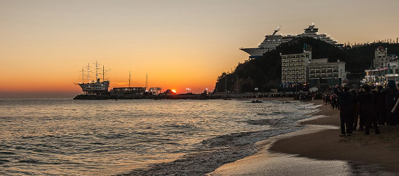 정동진 해수욕장에서 일출을 바라보기 위해 많은 사람들이 모인다고 하는데요. 빨갛게 떠오르는 태양 사이로 크루즈 모양 호텔을 함께 볼 수 있는 이색적인 명소입니다.