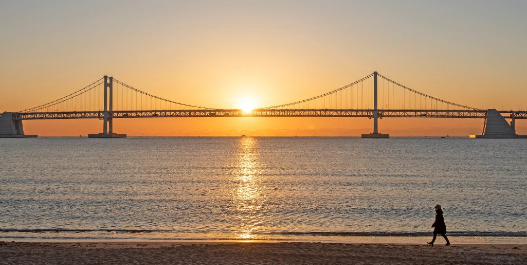 광안리의 일출 스팟이라고 할 수 있는 곳은, 광안리 해수욕장에서 바라보는 광안대교 위 붉게 떠오르는 일출일 텐데요.