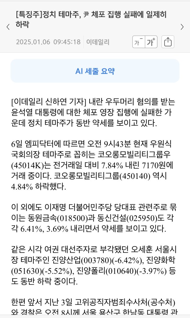 계엄 직후 크게 올랐다가 조정 후 내일 야당 대표의 재판 결과가 좋지 않을 것에 대한 기대감으로 다시 오르는 모양새다.