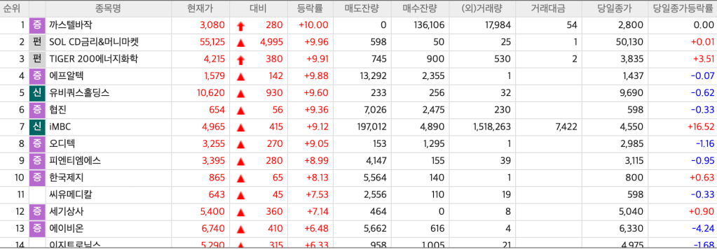 | 2025년 3월 24일 시간외 상한가 종목 (2) | 2025.03.25 |