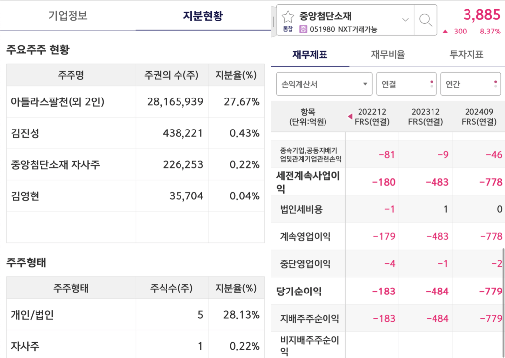 이러면 중앙첨단소재란 곳을 또 살펴봐야 한다.