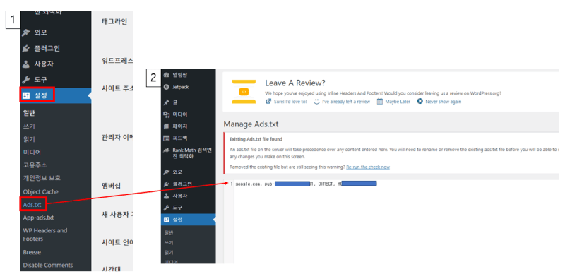 설치가 끝난 후 왼쪽 하단 설정을 클릭하면 ads.txt 메뉴가 보입니다.