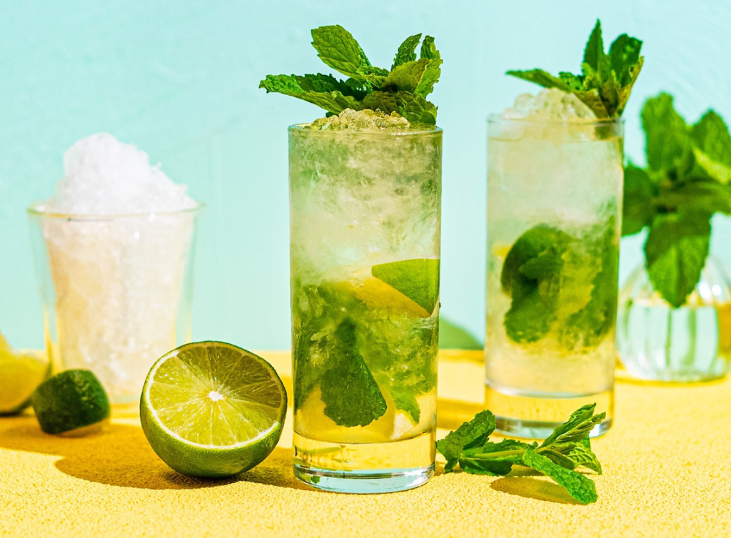 딸기 모히토, 수박 모히토, 블루베리 모히토, 코코넛 모히토 등 인기 있는 과일 변형도 많이 있습니다.