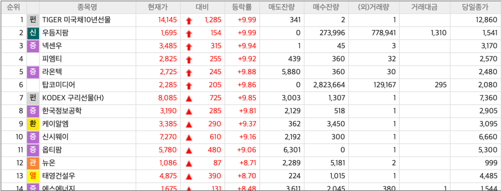 2025년 4월 11일 시간외 상한가 종목 중 눈에 띄는 종목을 살펴보자.