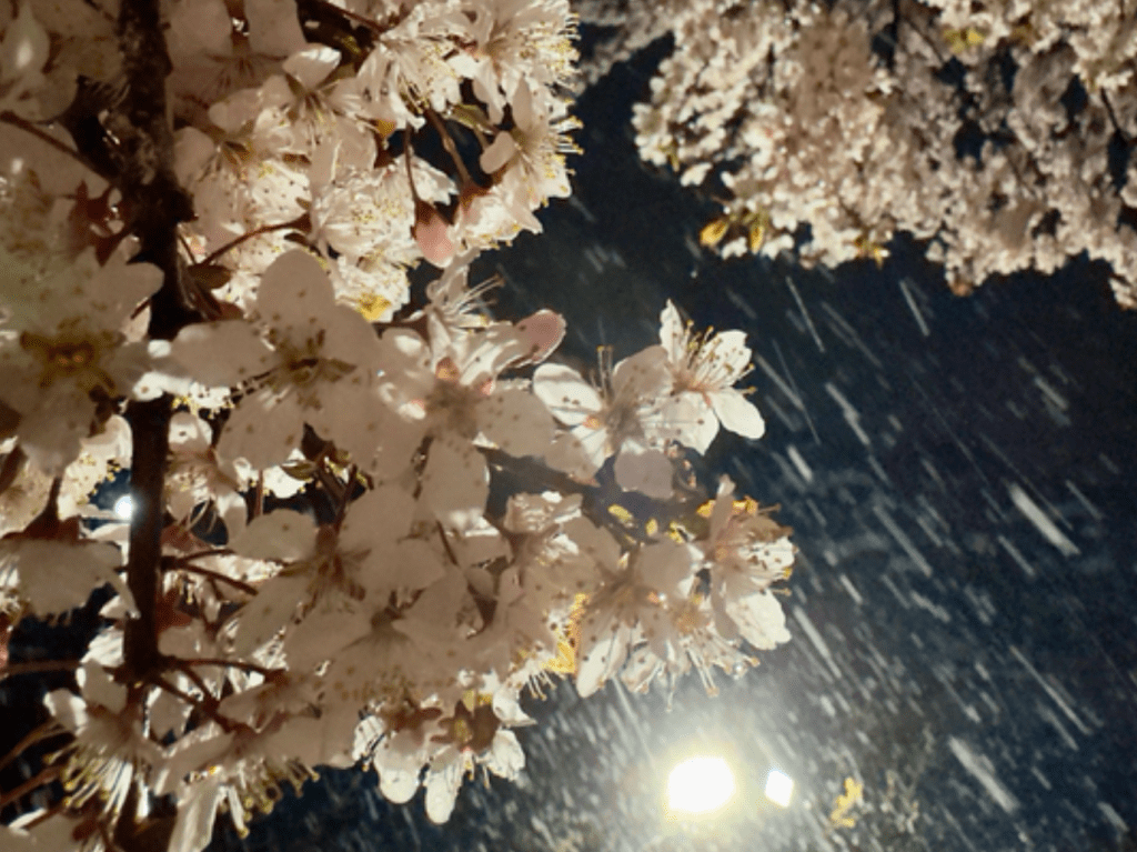 이날 아침 서울은 1.1도로 겨울처럼 추웠다. 바람도 강하게 불어 체감온도는 -2.4도로 더 낮았다. 밤사이 소셜미디어(SNS)에는 “벚꽃과 눈을 함께 보다니, 날씨가 이상한 것 같다”며 사진과 영상이 여럿 올라오기도 했다.