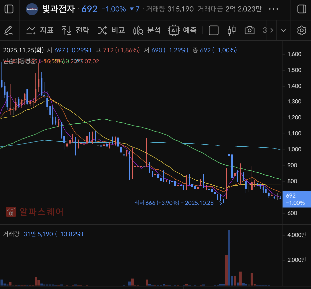 - 주가: 약 692원 (전일 699원, 일중 범위 690~712원 수준)
