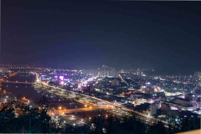왼쪽으로는 순천역의 야경이, 오른쪽으로는 순천 매곡동의 야경을 볼 수 있습니다.