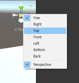 씬 기즈모의 관점을 바꾸는 기능은 기즈모를 오른쪽 클릭해서 바꾸기도 한다. 기즈모를 직접 만들어서 사용할 수도 있습니다. (이러한 커스텀 기즈모는 나중에 알아보도록 하겠습니다.)