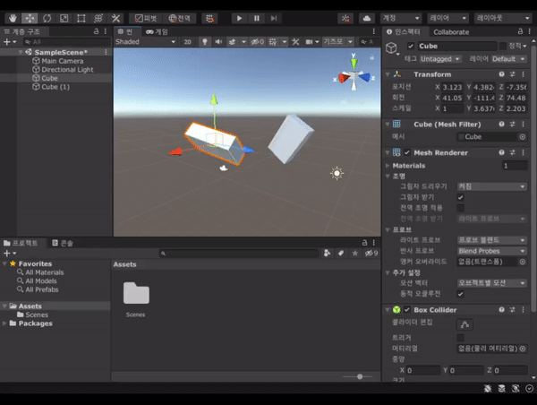 오브젝트에서Collider 표면의 한 점을 향해 회전하는 것을 볼 수 있습니다.