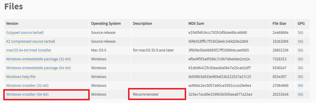 - "Stable Releases" 바로 아래에 있는 것이 안정화 버전 중 가장 최신 버전이다. 클릭.