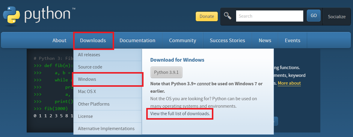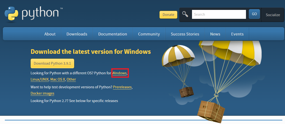 (또는 다음경로 직접 접속 : www.python.org/downloads/ )