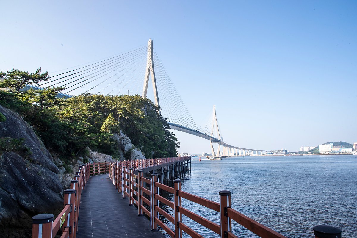 케이블카를 타고 고하도 스테이션에 도착하면 고하도 전망대와 해안데크를 방문할 수 있습니다. 5층 전망대에서도 볼 수 있는 해안데크는 바다 위를 걷는듯한 기분을 느낄 수 있는 곳인데요. 약 1km의 해안데크를 따라 걷다 보면 높이 4m 가량의 용머리 포토존과 이순신 장군 조형물을 만날 수 있습니다. 시원한 바닷바람을 맞으며 아름다운 목포의 풍경을 감상해 보세요.