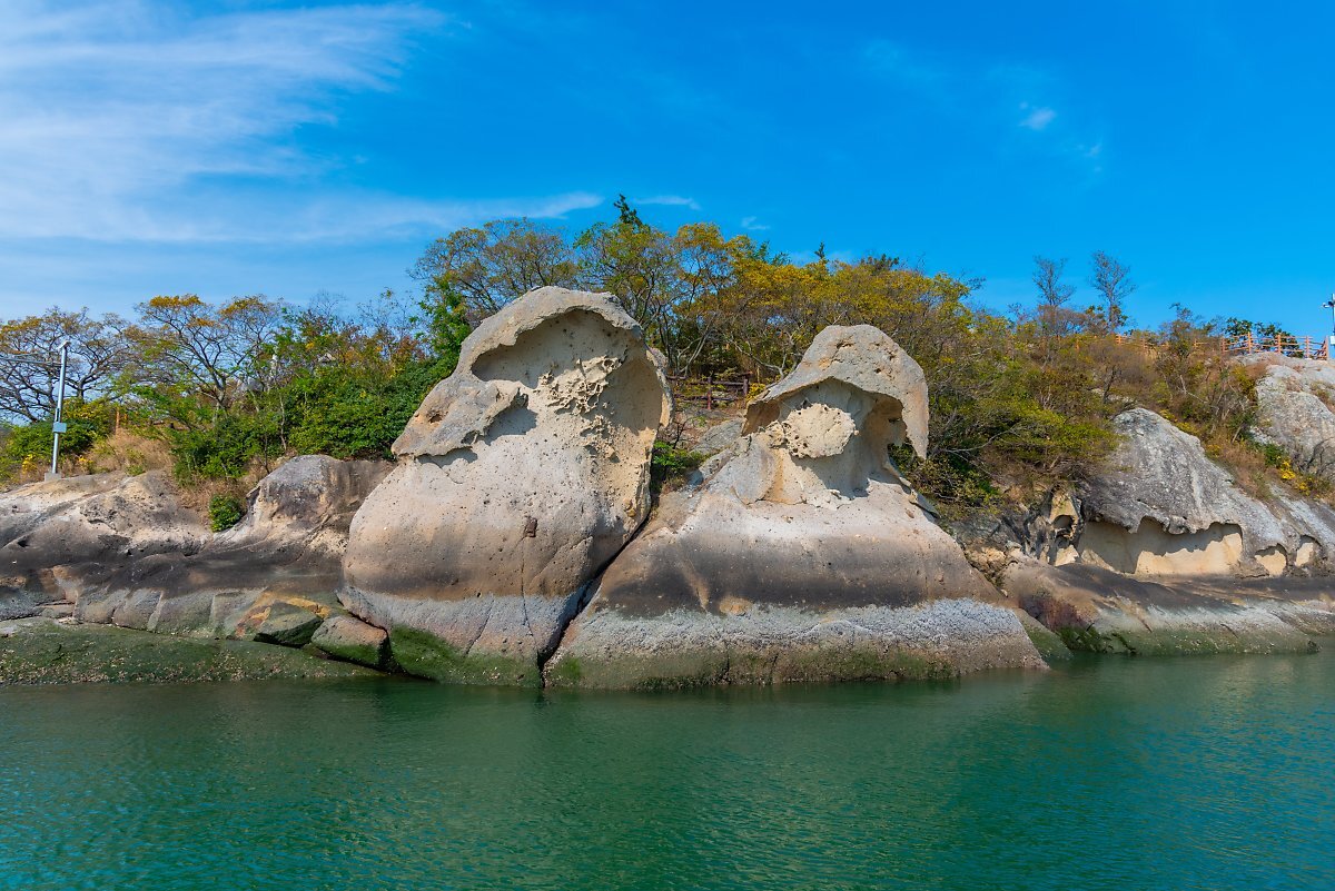 목포에는 오랜 시간이 만들어낸 아름다운 풍경이 많습니다. 그중 대표적인 것이 갓바위인데요. 천연기념물 제500호로 지정된 갓바위는 두 사람이 삿갓을 쓰고 있는 모습의 바위입니다. 약 8,000만 년 전 화산재가 굳어진 암석 표면에 파도가 치거나 안개가 껴 물에 젖었다 마르기를 반복하면서 만들어진 모습이에요. 이전에는 배를 타고 이동해야만 볼 수 있었지만 현재는 해상 보행교가 설치돼 보다 편하게 감상할 수 있습니다. 저녁에는 불빛이 더해져 로맨틱한 분위기도 느낄 수 있어요.