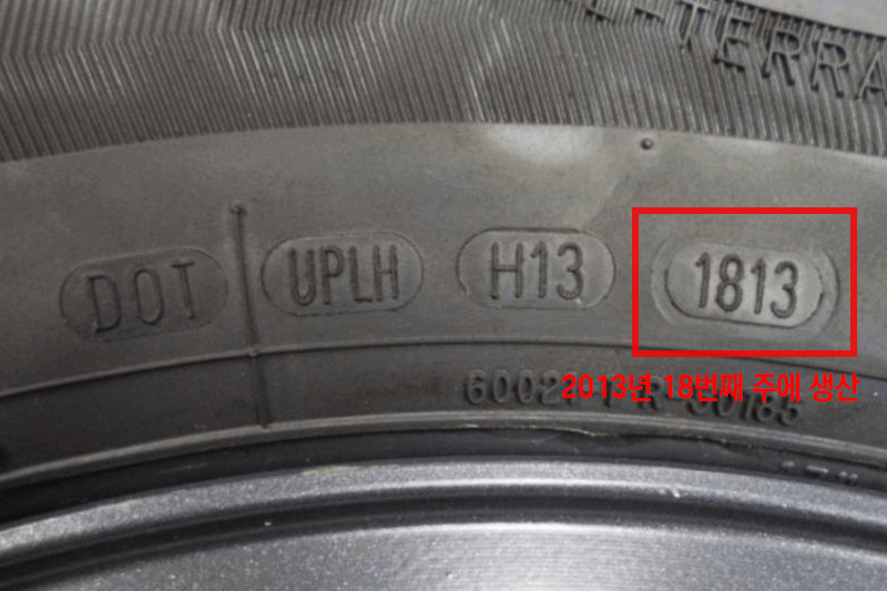 4자리 숫자의 앞 2자리는 생산 주차, 뒤 두 자리는 생산연도로 사진의 타이어는 2013년 18번째 주차에 생산되었습니다.