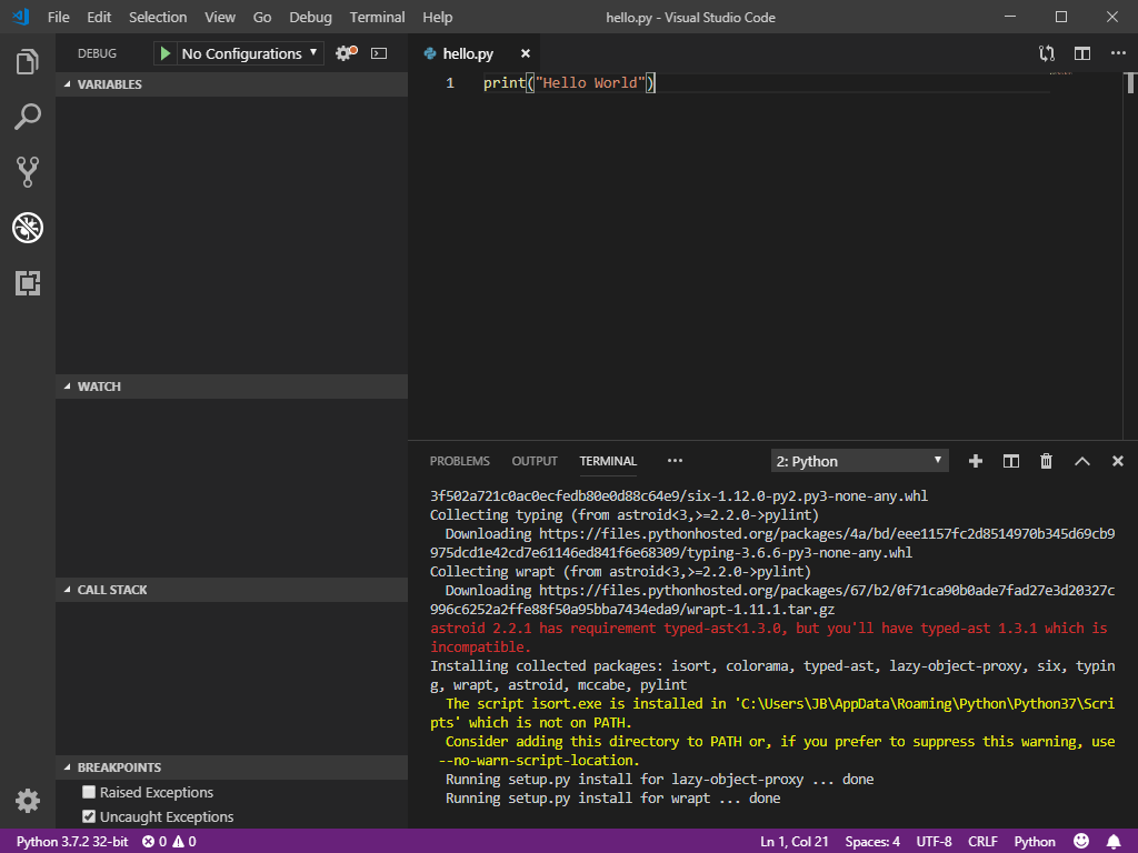 - 'Linter pylint is not installed.'라는 메시지가 계속 나옵니다.