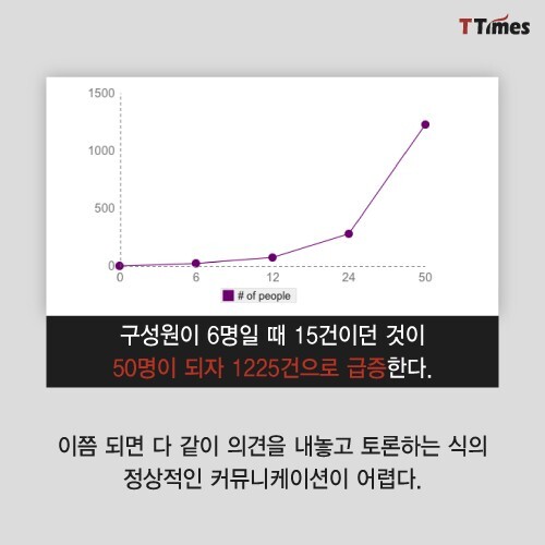 사람이 많을수록 더 많은 커뮤니케이션이 일어나고,