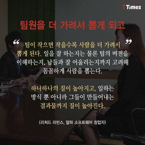 작은 팀 단위로 나눠 소규모 커뮤니케이션을 활발하게 하고