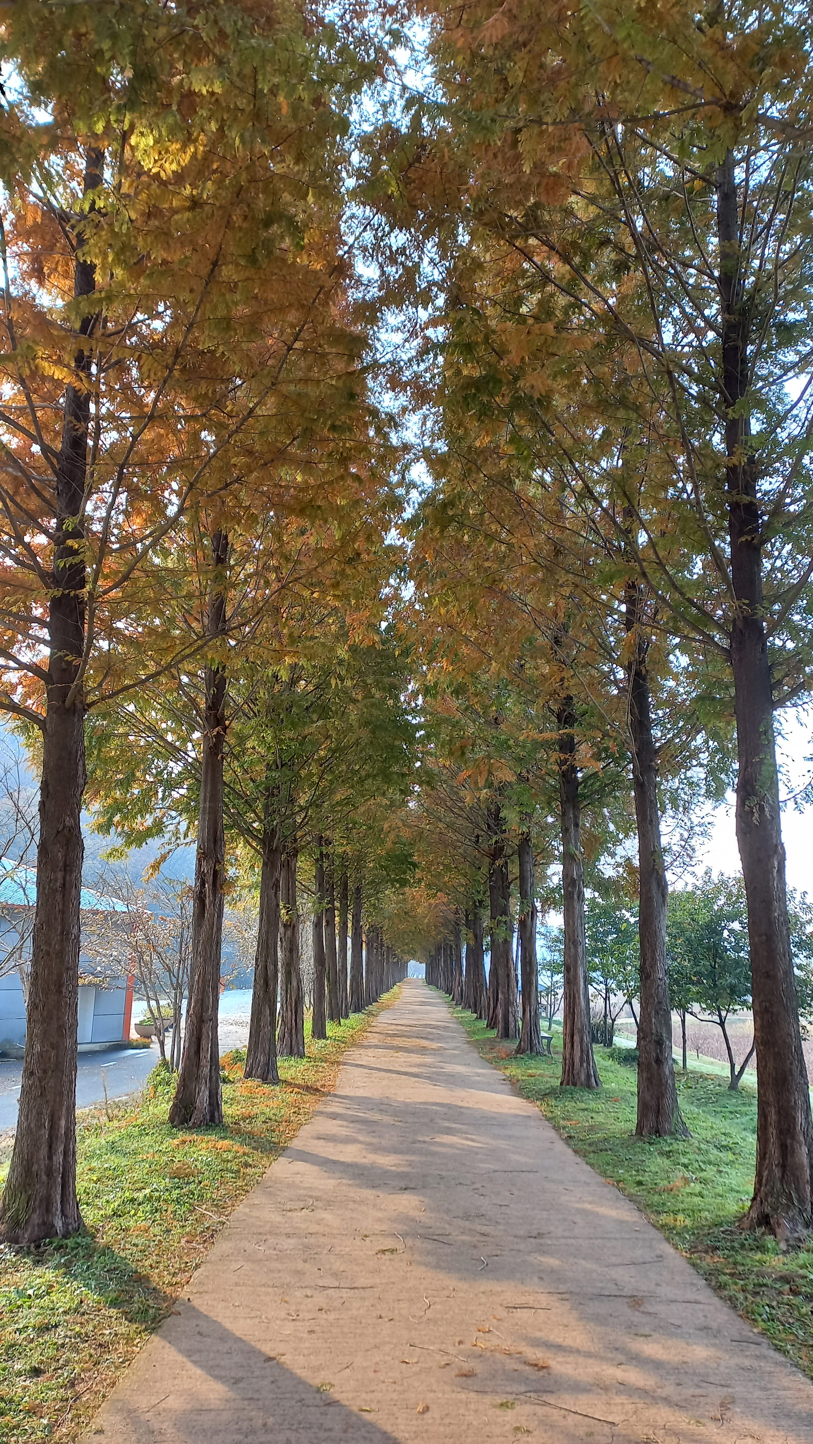 공주 메타세콰이어숲길은 정안천 생태공원을 따라 길게 이어져 있습니다.