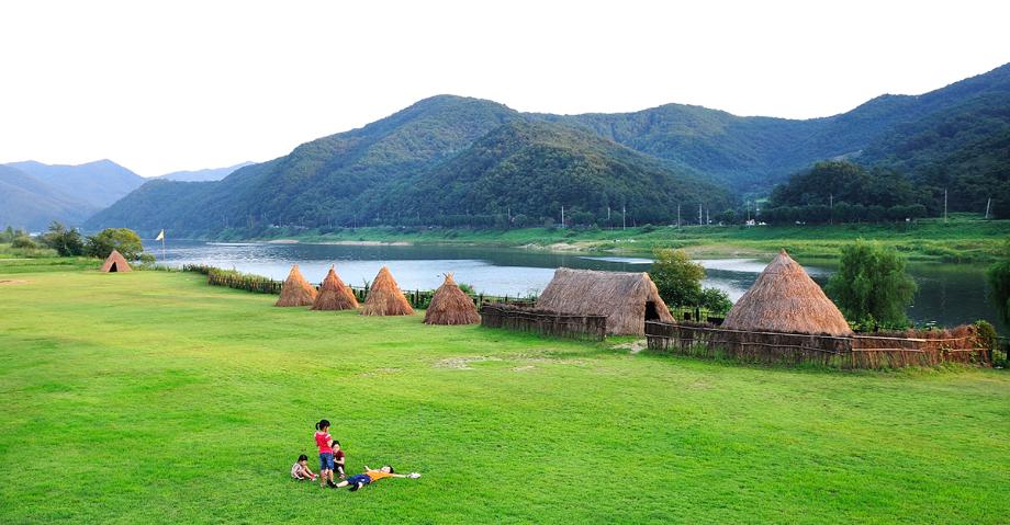 석장리 유적은 금강과 접한 산의 완만한 경사면이 만나는 지대에 위치하고 있습니다.