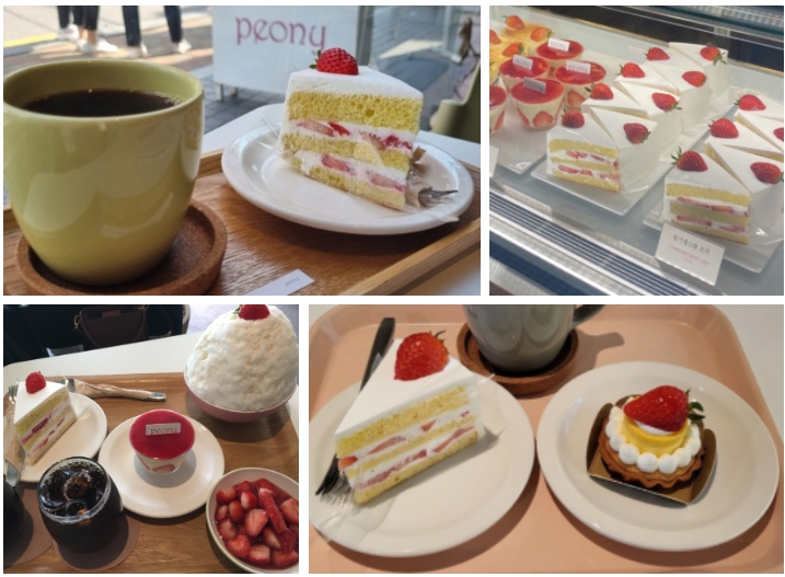 딸기케이크 및 디저트와 음료를 판매합니다.