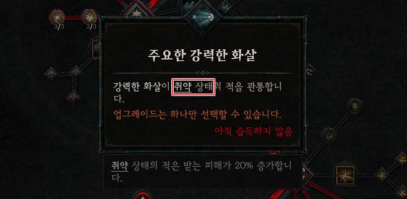- 변경 전 : 강력한 화살이 취약 상태의 적을 관통합니다.