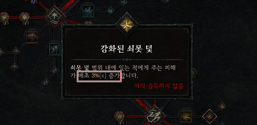 - 변경 전 : 쇠못 덫 범위 내에 있는 적에게 주는 피해가 매초 3% 증가합니다.