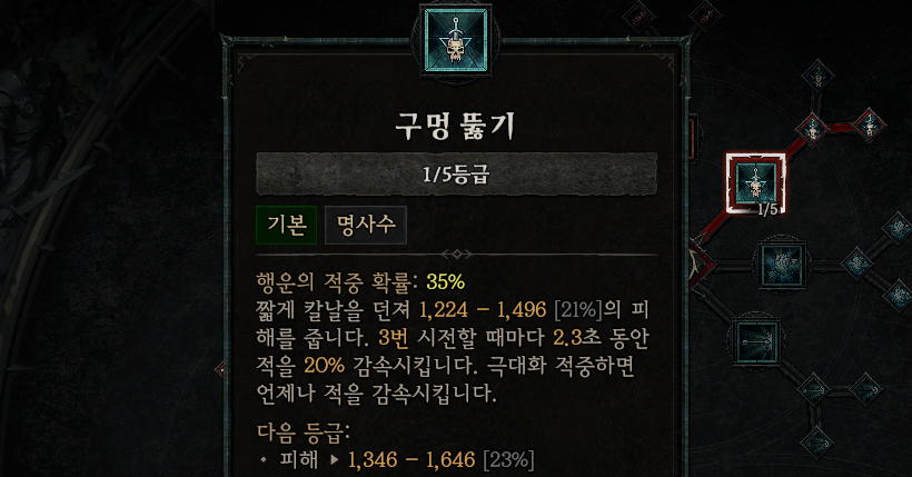 - 변경 전 : (행운의 적중) 취약 상태의 적에게 직접 피해를 주면 35% 확률로 폭발을 일으켜 주변 피해